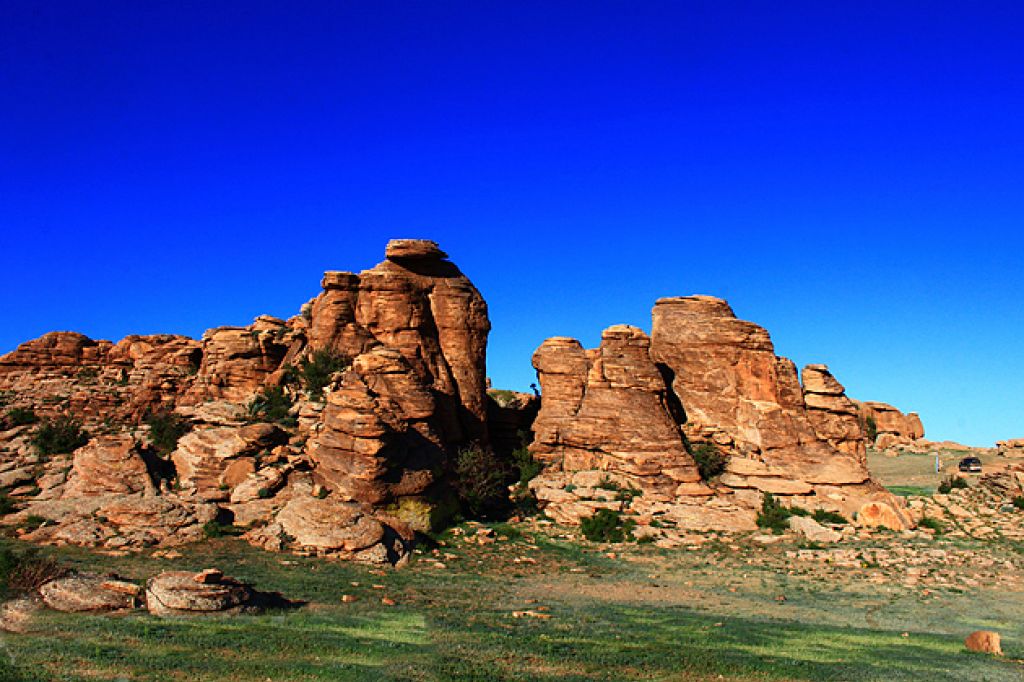 Head east to see the colossal Chinggis Khaan Statue at Tsonjin Boldog, standing 40 meters tall. Continue south to Baga Gazriin Chuluu, a striking granite rock formation rising dramatically from the desert steppe. Explore caves, springs, and ancient petroglyphs scattered throughout the site.